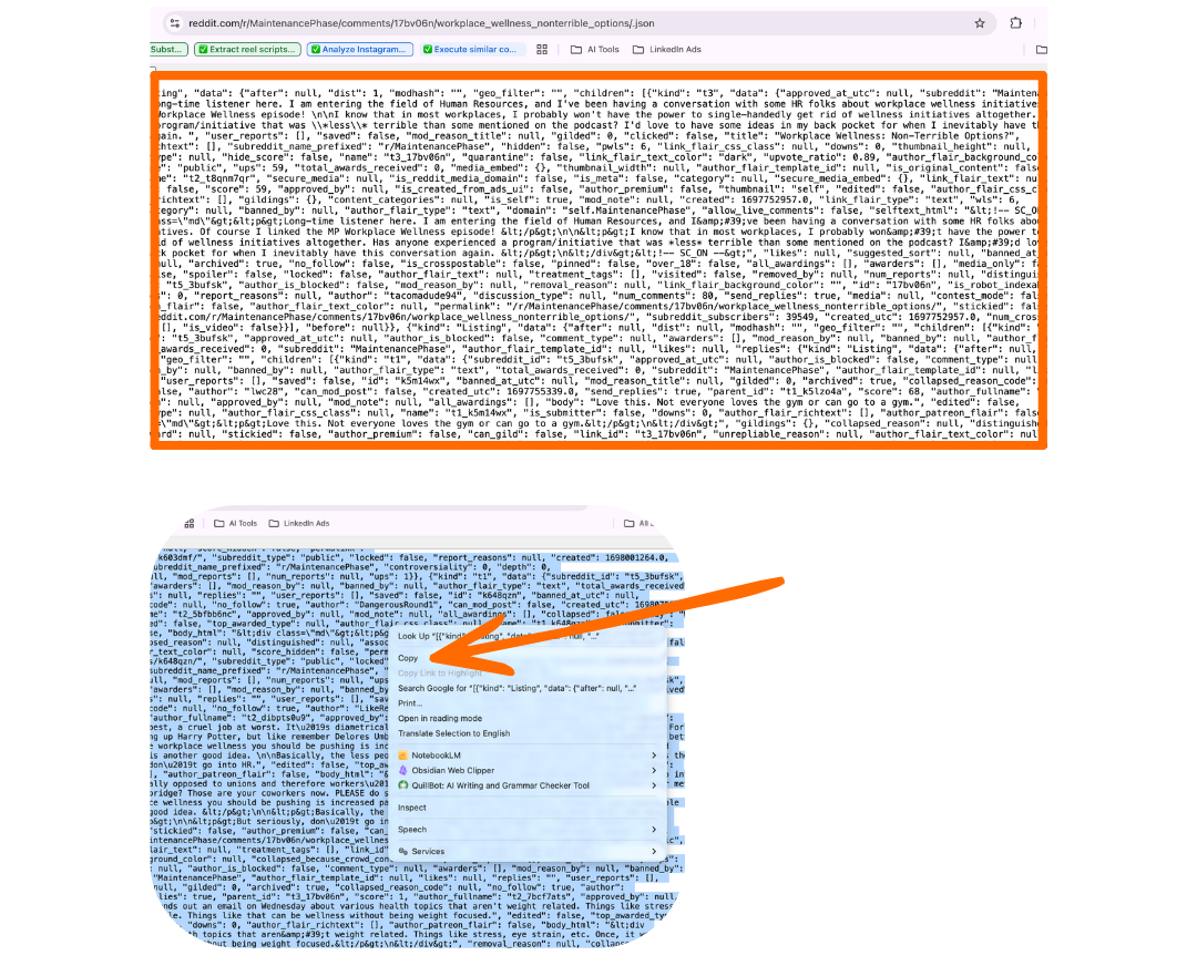 This converts the entire thread — every comment, every reply, every timestamp — into structured metadata.