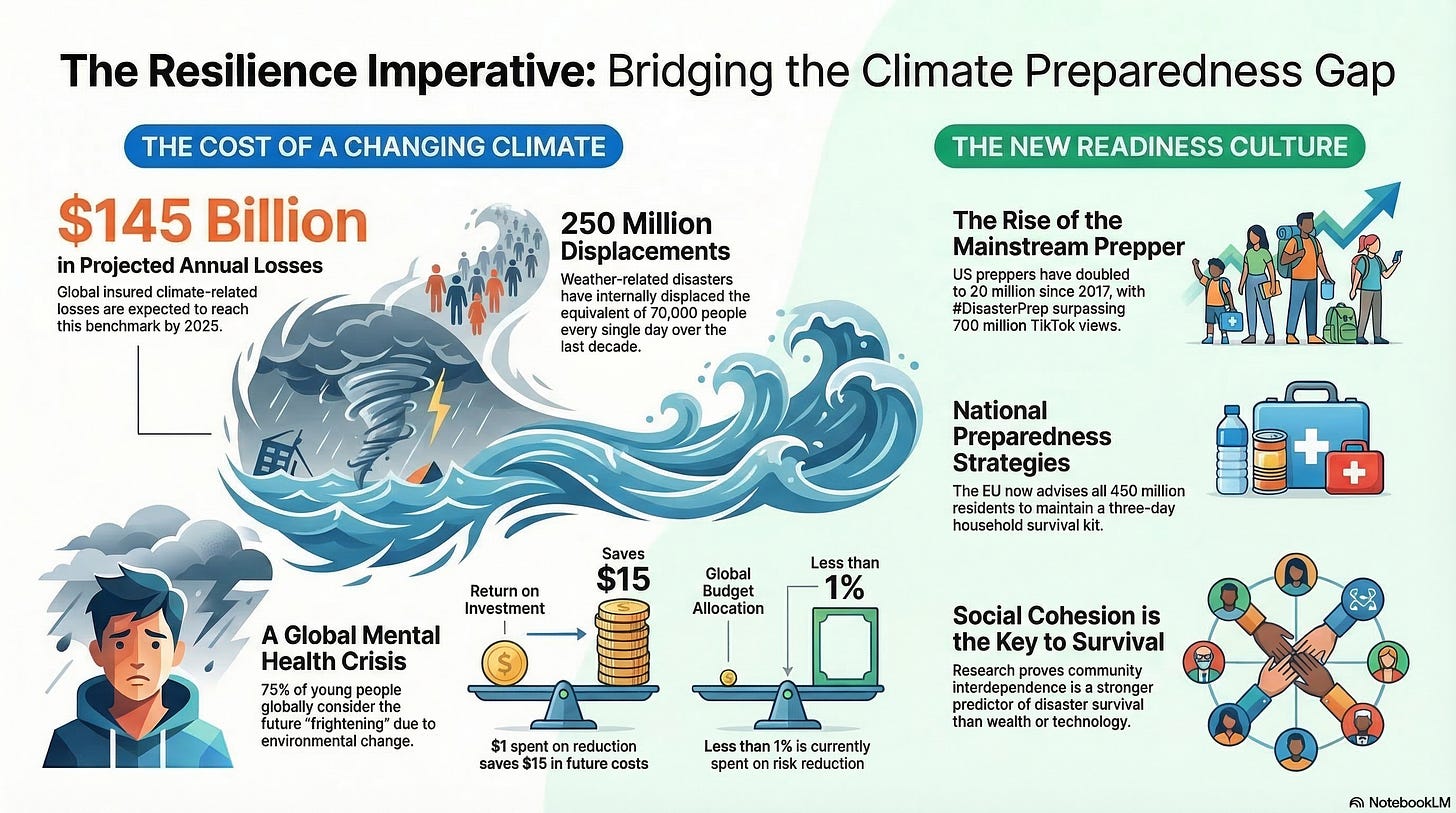 - The EU launched its Preparedness Union Strategy in March 2025, advising all 450 million residents to stock a three-day household survival kit.Community interdependence: resilience as a collective activity.