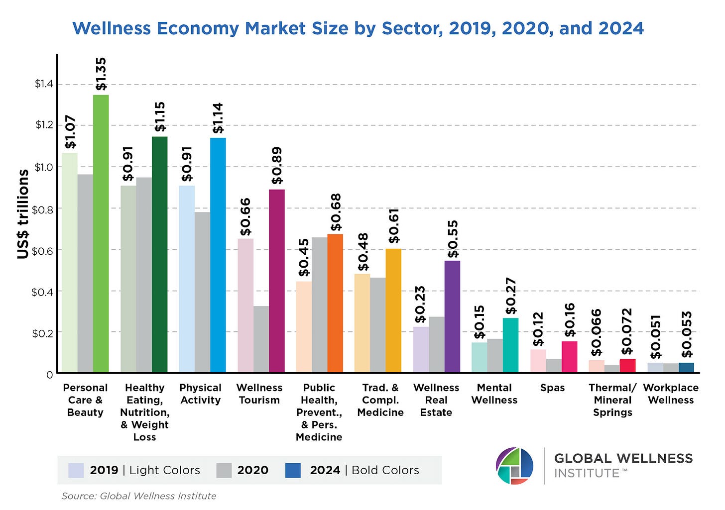 The global wellness economy is growing at 7.6% CAGR, faster than global GDP.